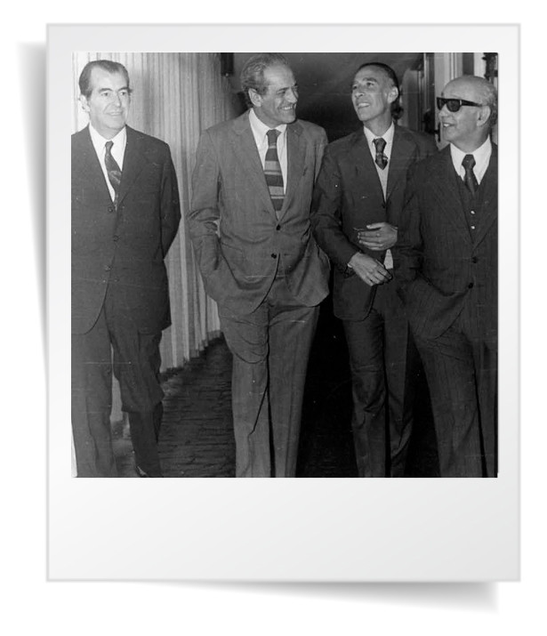 Directivos de la CChC durante el 62° Consejo Nacional. David Farías, Hugo León, Jaime Allende y Raúl Varela, 1975.